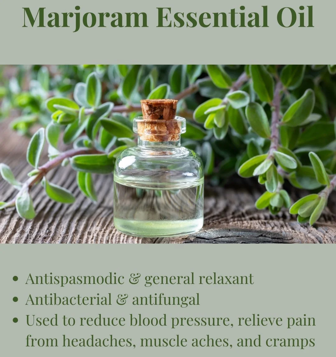 At home, marjoram essential oil can be used externally to help relieve muscle and joint pain and stiffness, ease constipation and flatulence, help stimulate menstrual flow, soothe headache and migraine pain, lower blood pressure, and generally act to relieve tension, stress, and insomnia. I would recommend diffusing marjoram essential oil or rubbing a small amount diluted with a carrier oil on the chest to help with respiratory problems such as asthma, coughs, bronchitis, and colds.